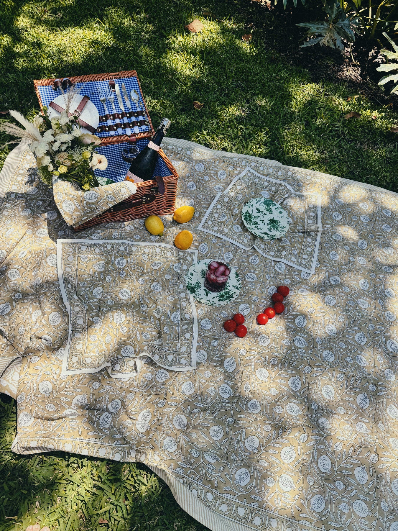 Handblock Printed Pomegranate Picnic Blanket – Carolina Benoit