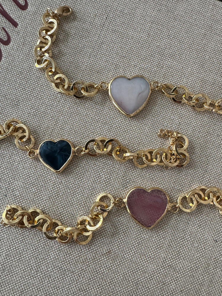 This stunning glass heart Bracelet features a unique handcrafted glass pendant with a shimmering gold-plated bezel. The colors and shapes of each necklace vary, offering a unique and personalized look. Perfect for a special occasion or to add a touch of class to any outfit.