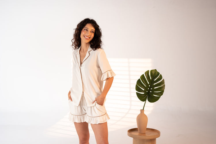 Daynaps Short Sleeves Pajama - White & Brown