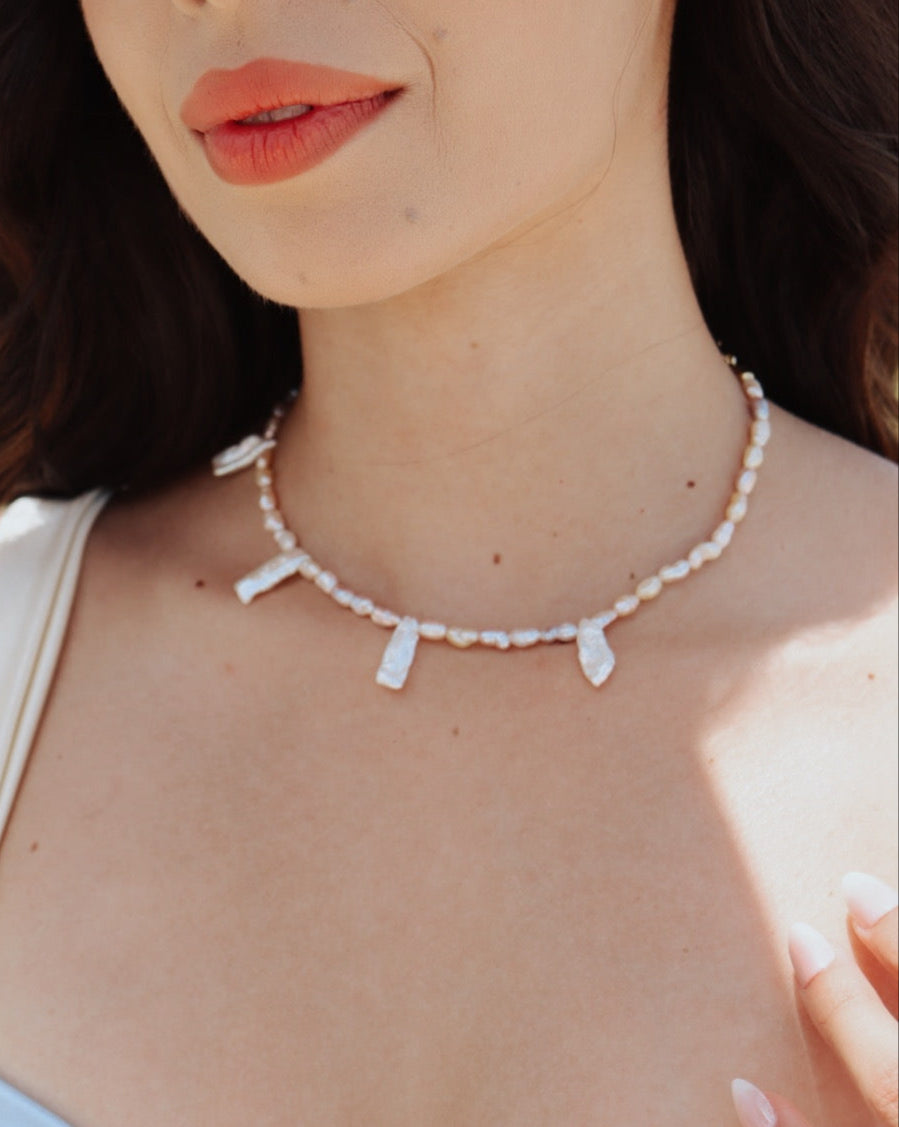 Each piece in our Salt Water Heirloom collection reflects the quiet romance of nature and memory. The Vintage Pearls Necklace is a nod to old-world elegance, featuring luminous freshwater pearls strung in a traditional silhouette with a modern clasp detail. Understated and sophisticated, it’s the kind of necklace that feels at home with both heirloom dresses and everyday white tees. Handcrafted in Miami and made in small batches, this strand is waterproof and designed to grow more meaningful with time.